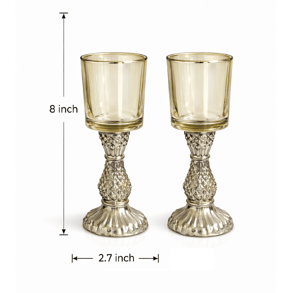 Crafted from high-quality glass and durable metal, these candle holders are ideal for tea lights, votive candles, and small pillar candles. Their elegant design makes them perfect for dining table décor, festive décor arrangements, wedding centerpieces, luxury hamper displays, and home décor styling.
