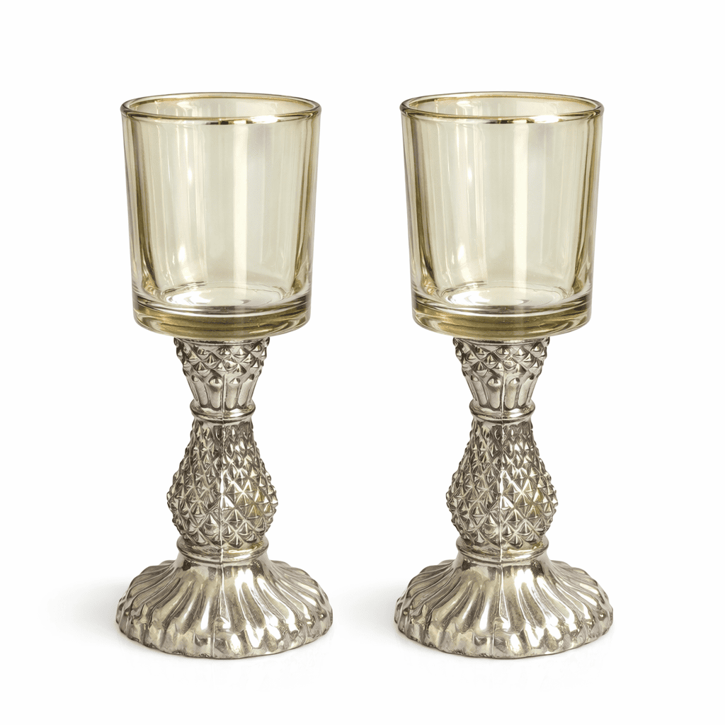 Antique Gold Glass Pedestal Candle Holder Set (Set of 2)