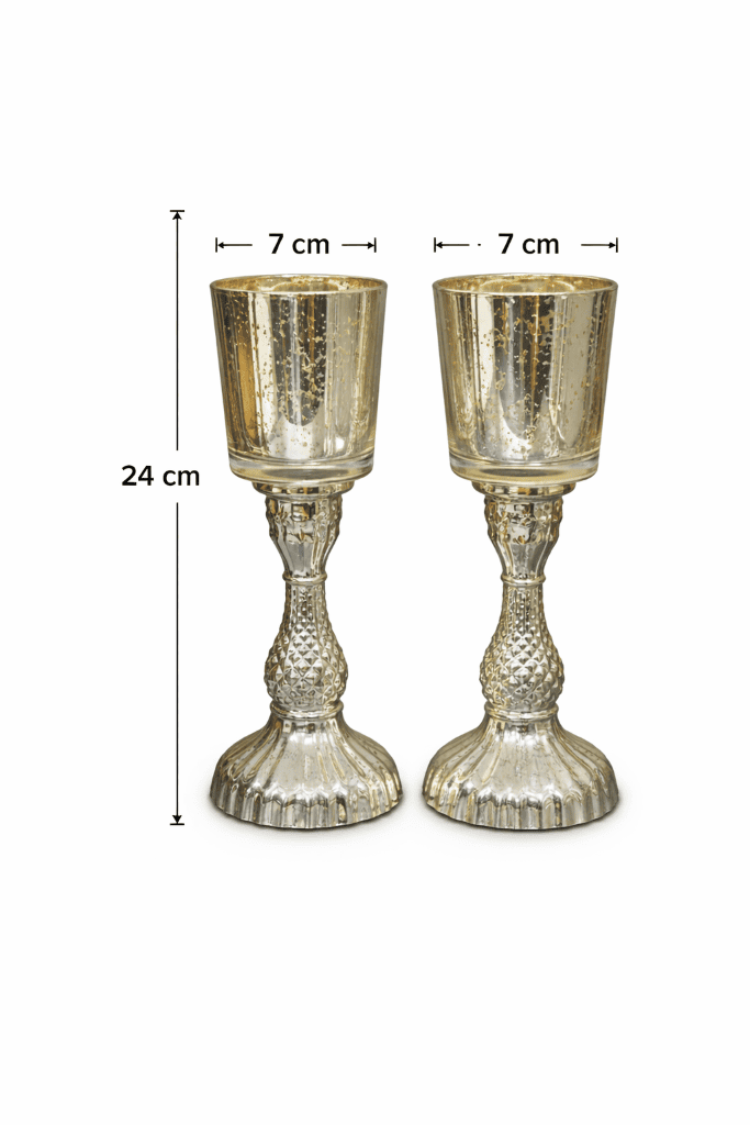 The reflective mercury glass surface enhances candlelight, making these holders perfect for table centerpieces, wedding décor, festive decorations, and luxury hamper displays. Their classic design blends effortlessly with modern, vintage, and festive décor styles.