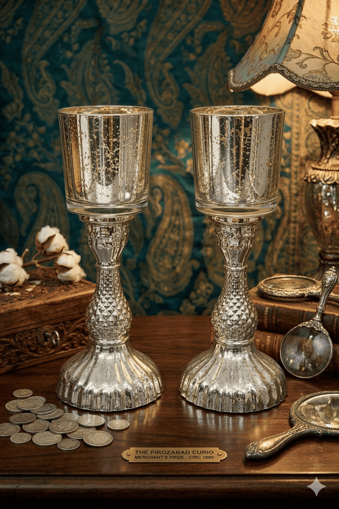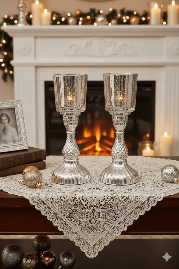 • Elegant antique mercury glass candle holders