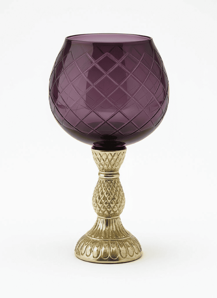 Diamond Cut Glass Hurricane Candle Holder with Gold Stand
