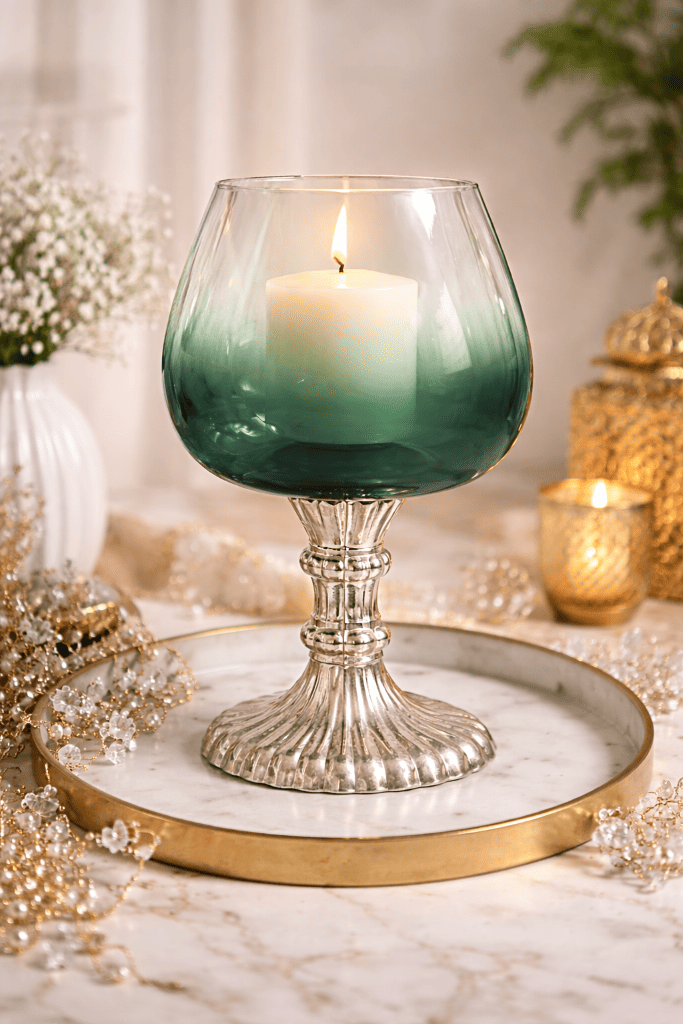 Crafted from high-quality glass, this decorative holder is perfect for displaying candles, potpourri, or decorative fillers. The soft gradient finish enhances candlelight beautifully, creating a warm and sophisticated ambiance ideal for dining tables, festive décor, and elegant home settings.