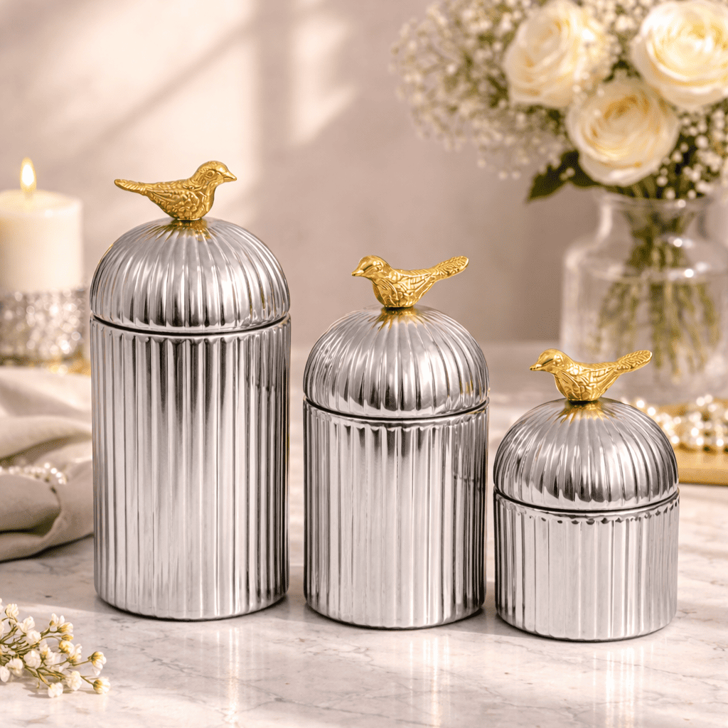 Ribbed Decorative Storage Jar Set