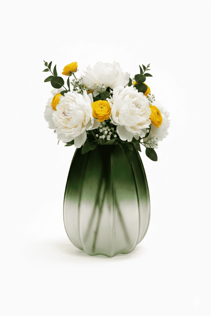 The Green Ombre Decorative Glass Flower Vase by The Castle Crafts is a stylish and elegant décor piece designed to enhance modern interiors. Featuring a beautiful green gradient (ombre) finish that softly fades into a frosted base, this vase creates a soothing and luxurious decorative appeal.