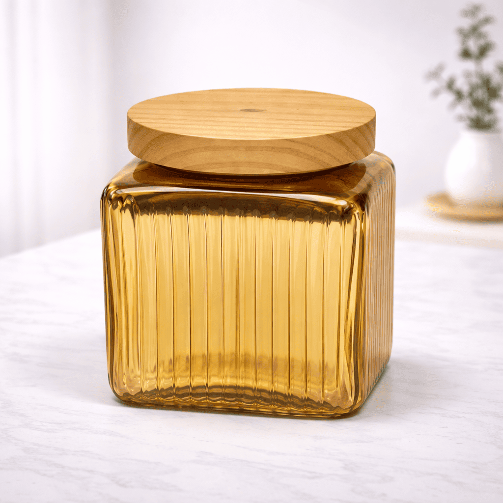 The airtight wooden lid helps keep the contents fresh while adding a premium natural touch to the jar’s design.